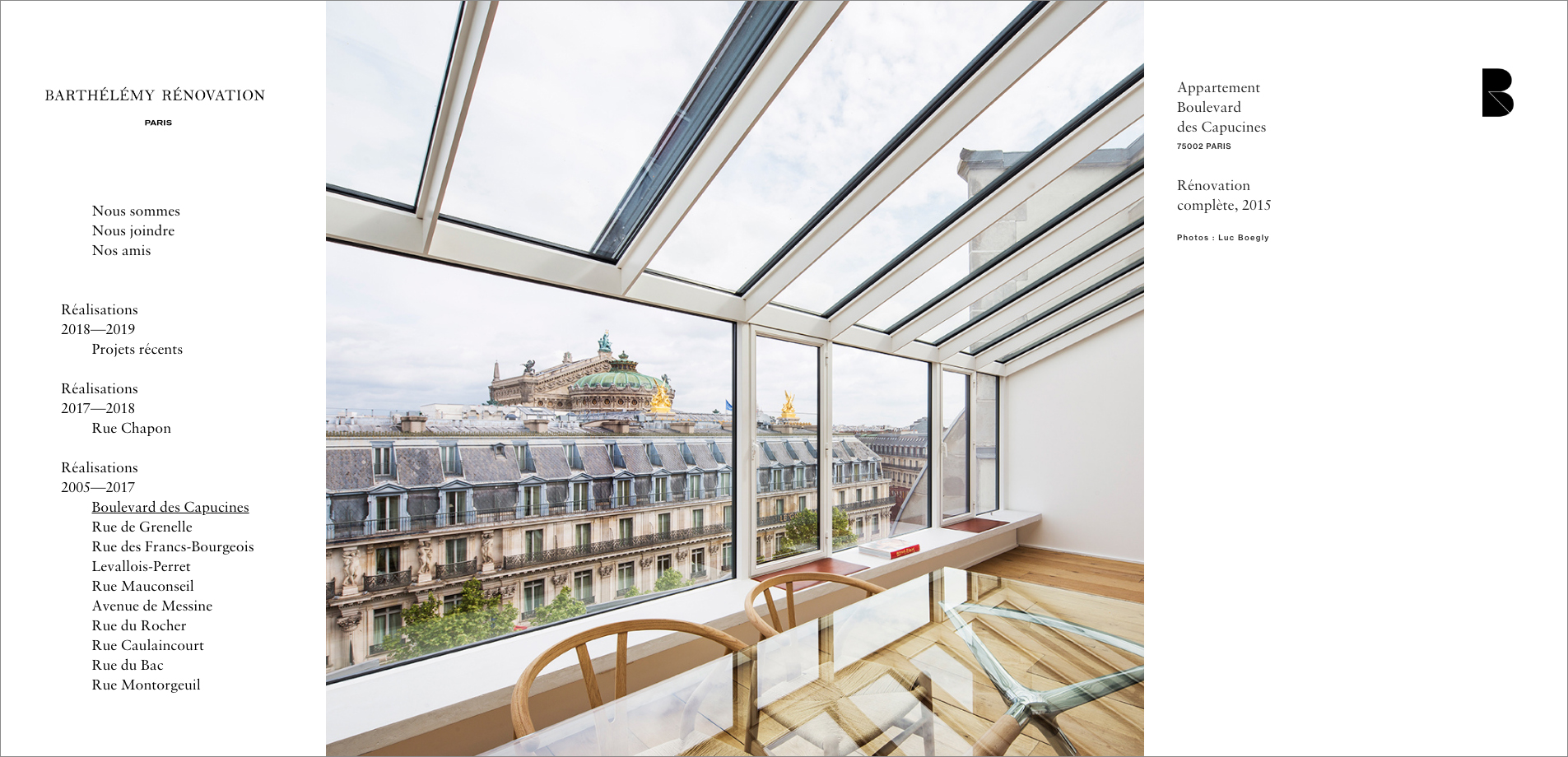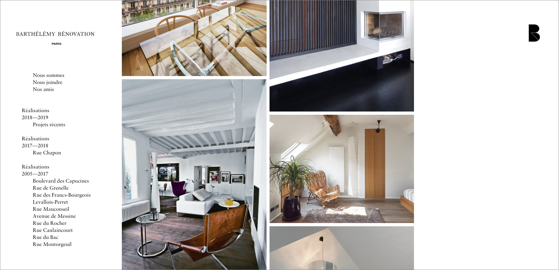 Il y a une dizaine d’années, nous étions heureux d’accompagner Antoine Barthélémy dans la création de l’identité visuelle de Barthélémy Rénovation. Depuis, beaucoup de travail à été réalisé par Antoine et ses équipes, qui est spécialisé dans la rénovation d’appartements haut de gamme. De notre côté, et bien, rien n’a vraiment changé. Le logotype est resté tel qu’il était. Ah oui, il a juste perdu ses empattements … qui sont réapparus dans une nouvelle typographie adjointe au logo.